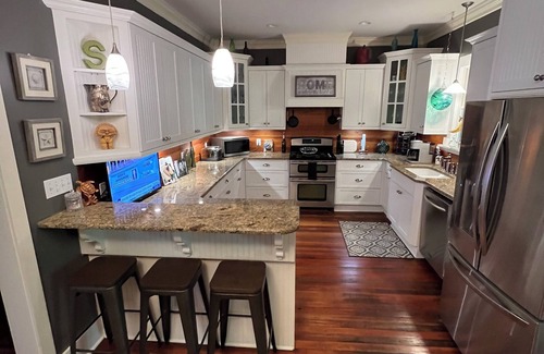 Lovingly renovated by the home's 2nd owner, this property was masterfully taken back and preserved to its original character. The owner tirelessly brought back the heart pine floors, walls and ceilings; making sure to keep the historic details and timeless southern charm-while seamlessly incorporating modern comforts including granite counter tops, surround sound systems, jetted tubs, and multiple thoughtfully updated kitchens and baths.
