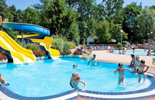 The restaurant and pizzeria are located in the heart of the campsite, next to the playground, trampoline, and covered area with table tennis and arcade games. At the reception, you will find tourist information (walks, Walibi amusement park, caves, waterfalls, towns, museums). The grocery shop is also located here, offering fresh bread and postcards. Washing machines and dryers are available in the sanitary facilities. There is also a children's area in the sanitary block, with child-sized showers, sinks, and a baby bath with a changing table. The swimming pool and the river will help you cool off, as well as the different nearby lakes. At the center of the campsite, you will find a water area with slides, a play zone for toddlers, and a heated pool.