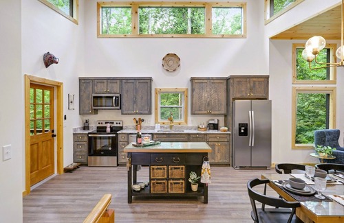 Welcome to Modern Chic Luxie Bear, an ultra-stylish cabin tucked into the Blue Ridge Mountains of Ellijay, Georgia. This amenity-packed retreat combines elevated design with cozy mountain living and is located inside Coosawattee River Resort, offering access to pools, trails, and resort amenities. Perfect for quick family Spring days off and multi-generational getaways, cozy weekends and longer stays alike.