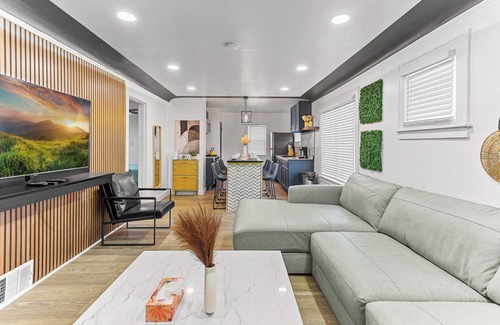 Let us host you at this Modern Oasis, that can accommodate 16+ guests, renovated with intention to accommodate larger groups of people traveling together to Detroit.