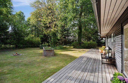 Here you stay just a few hundred meters from the water, surrounded by tall trees and peaceful paths. The renovated 83 m² holiday home offers three bedrooms in the main house—all with double beds—and a fourth bedroom with a double bed in a fully insulated annex. The open layout, large windows, and wood-burning stove create a relaxed and functional atmosphere.