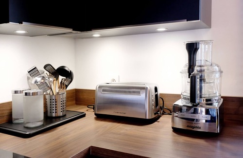 - A fully equipped kitchen (hob, microwave, oven, fridge / freezer, dishwasher, Nespresso coffee machine, toaster, kettle, food processor, crockery and cutlery, cooking utensils ...)
