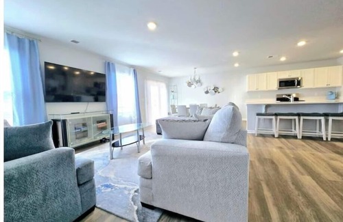 Welcome to your perfect gateway, in our brand-new, spacious 3BR 2.5 BA with two car garage beach house that offers luxury with all the amenities: fully equipped kitchen, stylish open- concept living spaces, WiFi, smart TV, and a private patio for relaxing evenings.