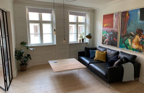 An historic preserved apartment in the heart of the city. The apartment is luxuriously renovated to create a modern and stylish base to experience Cph from. The high quality is really high, the spacious feel and recognized Danish art makes it the ideal place to relax. Location wise its perfect, just a few minutes walk from local bars and restaurants, tivoli and Nyhavn. The apartment is divided into six rooms, living room, large dinning room, 2 bedrooms, large walkin / guestroom, office and bathroom