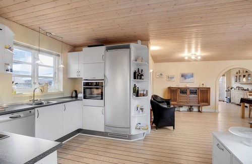 In the harbor town of Thyborøn, this beautiful vacation home welcomes you. The comfortably furnished interior makes a bright, friendly impression and invites you to feel at home. Enjoy the quiet atmosphere of the living room and spend cozy evenings in front of the fireplace. Everything is ready here for relaxing vacations in togetherness. In nice weather you can sit down with a freshly brewed coffee in the garden furniture and watch the flights of seagulls.