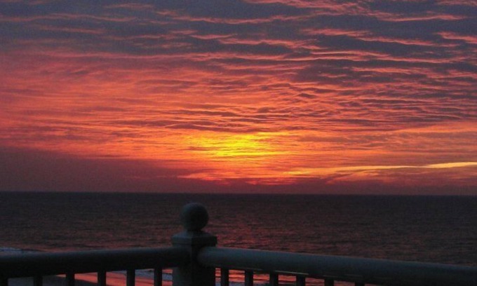 Begin the day by sipping coffee on our large oceanfront Wrap-Around Balcony, while watching a spectacular sunrise over the sparkling blue Atlantic! There's a tremendous view of the beach and ocean from two windows and double patio doors in the living room. There is also a great view of the ocean, beach and pools from the double patio doors and window in the master bedroom.