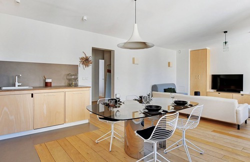 - An open kitchen, equipped and functional: microwave, fridge, hob, Nespresso coffee machine, toaster, kettle, dishwasher etc.