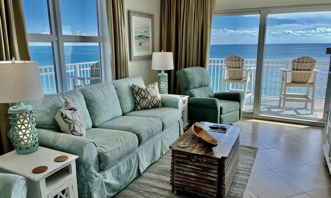 Located at 921 West Beach Blvd Gulf Shores AL, we purchased our unit in the Winter of 2018 and began remodeling and redecorating at that time and continue to update today as needed. The Unit is a Wonderful 10th Floor East End Corner Unit offering a large wrap around Balcony with access from both the Living Room as well as the Master Bedroom. The Spacious Condo offers Two King Suites each with Private Bath, Nine Foot Ceilings and Crown Moulding throughout. This complex offers a private outdoor pool and hot tub that leads to an indoor pool that is seasonally heated. There is an exercise room overlooking the beach and sauna located on the Lobby level. Charcoal grills are available for our guest to use but you must bring your own charcoal, starter and lighter. Rental chairs and umbrella's are available March to October (or November depending on the weather) from Ike's Beach Service. There is a place to leave your beach chairs (if you bring your own) in a secure beach side storage area used by the entire complex. You may want to consider bringing a cable lock to secure them. Each unit has a unique Wristband with FOB provided to you which allows you access to the Sauna, Hot Tub, Beach, Beach Storage Room, Exercise Room and Pool. The HOA does not allow RVs or Trailers on the property. Smoking NOT allowed in our unit, all common areas and all limited common areas which includes balconies. Pets NOT allowed by guests. There is no long boardwalk and no long walk through the hot sand.