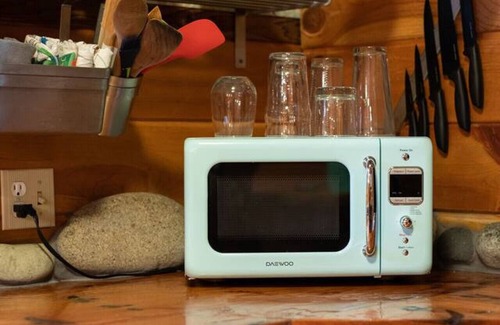 The cabin features a custom kitchen counter top made from reclaimed Teredo Clam Wood boards and river boulders. There is a full sized fridge, apartment sized range, retro microwave, coffee maker, and selection of all the basic kitchen supplies. Grill your favorite dish on the Webber propane BBQ after a long day on the slopes - Steven’s Pass Ski Area is 30 minutes away - or hiking, fishing, or tubing on the wild river.