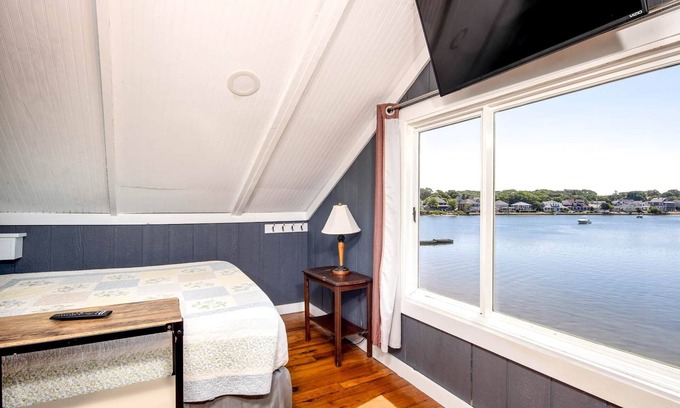 The Ocean View Room,private room located inside of the Flamingo House on onset beach Cape Cod! Enjoy your inclusive breakfast with a view before an activity filled day brought to you by #Playhere! Flamingo house guests can enjoy kayaking, paddle boarding, fishing, boating and more all privately provided to Onset Beach Compound guests. #Playhere also provides the compound off the water activities such as E Bikes, roller blades and more! Flamingo guests are also granted full access to the compound amenities such as the compound hot tub, fire pit, grill and outdoor shower. Steps from the beach, and a smooth path straight into onset village. The Onset Beach Compound is thrilled to provide the best experiences's for all of our guests and the flamingo house rooms are the perfect option for anyone to recharge. Clean, simple, safe, and perfect for easy Cape Cod getaways.