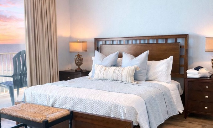 The resort offers exceptional amenities, including two expansive lagoon pools, an indoor heated pool, a 4,300 square foot fitness center with a Roman spa, a 5,000 square foot conference center, and a media room playing kid's favorites for rainy days. Onsite dining and drinks are available at "Waves," and you can grab your morning coffee at Flip Flops convenience store. Just a short walk to Pier Park and conveniently located across the street from the famous Dusty's Oyster Bar, this condo offers the perfect blend of relaxation and entertainment. All guests must pre-register with the resort! Preregistering means wristbands are programmed and parking passes are created ahead of your arrival. Guests must stop by the Tidewater registration desk upon arrival to pick up wristbands and parking pass. You’ll find this registration desk just inside the walkway doors, on the second floor.