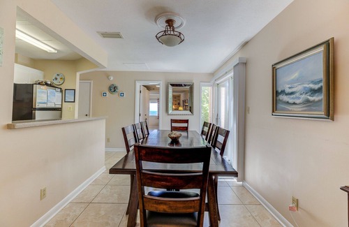 As you step inside, the tile flooring throughout the house becomes immediately evident. This deliberate choice not only adds a touch of sophistication but also ensures easy cleanup, especially when you return from the nearby beach with sandy feet. The fully equipped kitchen becomes a focal point for culinary endeavors. From morning coffee to family dinners, the kitchen is stocked with all the essentials to make your stay convenient and enjoyable.