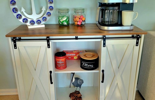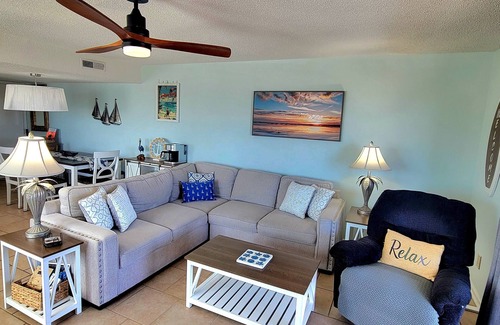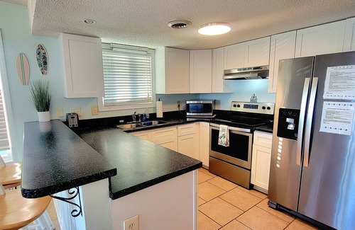 The condo features a fully equipped kitchen with everything you need to cook meals with family and friends. A ground-floor storage room is stocked with beach chairs and toys for easy beach days.