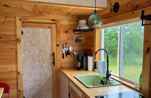 Escape to this waterfront tiny house paradise on Mount Desert Island! Sweeping Atlantic Ocean views, custom wood interior, full amenities, plus magical evening fire pit setup. Your private retreat overlooks serene waters perfect for kayaking and wildlife watching. The Tiny-House has been thoughtfully designed to have everything you need.