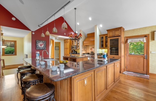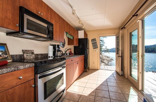 The waterfront is spectacular! The boathouse offers a large dock for sunbathing or entering the water for swimming. A full kitchen with electric range, microwave and refrigerator are available and luxury conveniences not typically found in a boat house! Two kayaks are provided for enjoying the lake.