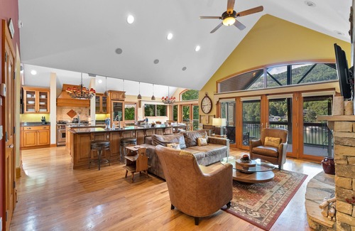 Summer's fun-filled days and tranquil evenings are at their best in this exceptional home on Lake Lure. Sweeping views of the Chimney Rock State Park Mountains that soar above the azure waters of Lake Lure can be enjoyed from almost every room.