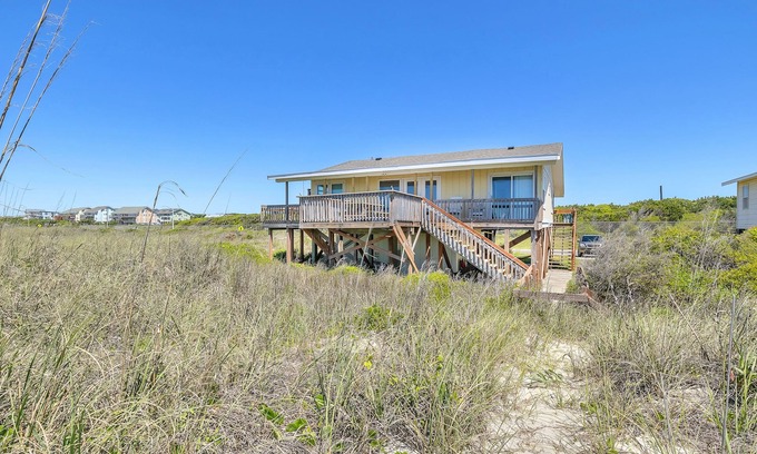 Enjoy a quiet stay in Caswell Beach in this classic Carolina cottage that provides the perfect relaxing, simplified beach getaway. Welcoming up to 2 dogs 60lbs or under per reservation, this home has room for the entire family. The open concept living area at the center of the home highlights the stunning ocean view. A large flat screened TV provides entertainment for the entire family through the Spectrum App, and wireless internet is also provided. A double sleeper sofa allows for extra sleeping space.