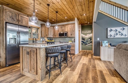 Enjoy three king suites, a loft bedroom with two queen beds, a fully stocked kitchen, stylish living spaces, and incredible outdoor areas including an 11-person hot tub, private barrel sauna, fire pit, and expansive decks. With two orchard farm markets right at the entrance of the community and downtown Ellijay just minutes away, the location is both scenic and convenient.