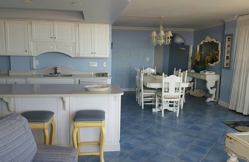 You will find sparkling blue tile floors, modern open kitchen with stone countertops, bathrooms fit with tile, glass and granite, and furnishings of fresh colors to create a clean and relaxing atmosphere.
