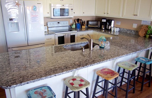 Are We There Yet? (8503 Ocean View EAST): 4 Bedrooms, 3 Baths. King * Queen * Queen * Bunk bed, Twin * Queen Sleeper Sofa with 2'' Tempurpedic mattress topper. All new windows with room darkening shades. 6 flat screen HDTVs, stereo/CD with iPod dock. Den with QSS and flat screen HDTV and free high speed wifi. Oak flooring, tile flooring and engineered hardwood flooring throughout.