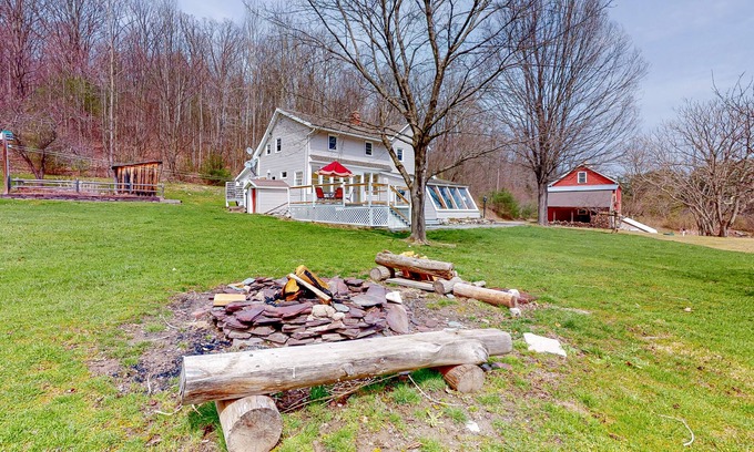 Featuring a private pond complete with a dock for fishing and swimming, a firepit, an outdoor shower, a hammock, and even tree swings, this secluded Castleton home is just what you've been hoping to find for your next getaway with friends and family. Inside, you'll find two furnished living areas, cool tile floors, and lots of attractive furniture and decor. After an invigorating hike on one of the nearby trails or a tour of the neighboring orchard, come back to stretch out on a spacious sofa to watch a good ballgame on the flatscreen cable TV. The full kitchen has all the stainless steel appliances and counter space you'll need to prepare something wonderful for tonight's home-cooked meal. Serve your guests at the dining table with seating for five while the little ones chatter away from the kids' table. Afterward, let the dishwasher knock out all the cleanup while you adjourn to the deck to catch up with friends. You'll love the furnished deck's covered table for five, and the kids can romp around on the grassy expanse surrounding the home. Don't worry about grass stains - the private washer and dryer will keep everyone looking their best during your stay. After some time in the pond, you can easily spritz yourself off under the outdoor shower. When evening falls, gather the gang around the firepit for an evening of toasted S'mores and some fantastic stargazing. At the end of the day, you'll have four well-appointed bedrooms to snuggle up into, the lower-level primary room with a spectacular views from an entire wall of broad windows. With Killington Ski Area and lots of fun outdoor activities like biking, zip-lining, rock climbing, and tubing to enjoy all around you, this home is truly a vacation destination you'll want to come back to again and again.