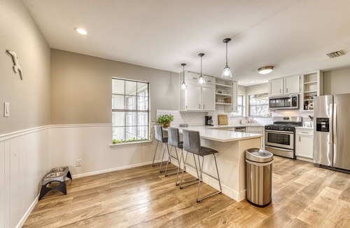 The moment you step into this gorgeous home, you will instantly feel at peace, so relax and unwind at this beautiful retreat. The property sits on two and a half acres and is along the north fork of the San Gabriel River. Take a quick walk down the driveway and go for a delightful swim. Relax under the stars while sitting around one of the firepits. (No wood is provided for the firepit; you must bring your own.) This home has an ideal location to get away from it all and still experience everything Liberty Hill offers. Take the afternoon and go to the Thirsty Mule Winery and Vineyard, as it is a quick drive from the house! Do some antique shopping at Junque & Disorderly Antiques, or take a day and visit one of the many parks, such as Lion's Foundation Park, Liberty Hill Veterans Park, or Liberty Hill City Park. Have some fun and go to the Best of the West Shooting range or float the river when the levels are higher!