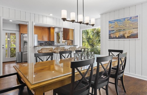 Discover Pelican's Perch, a 4-bedroom, 3.5-bath Sea Pines retreat that sleeps 9 and sits just 800 feet from the beach (approximately a 3–4 minute walk). This 4th-row upside-down coastal home features a private pool with complimentary seasonal heat (March–May & September–November), a screened-in porch, and open gathering spaces with elevated, treehouse-style charm. Designed for families and groups, Pelican's Perch blends classic beach house character with modern comfort in one of Hilton Head's most desirable neighborhoods.