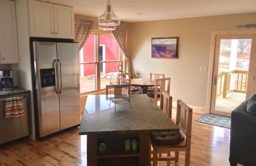Cozy Winter package available November - March - enjoy early 1pm check in and late 1pm check out so you a make the most of your time at the Little House. Cozy snack package also included. Let us know if you’d like to also enjoy sleds or a cozy winter campfire! Thank you for staying with us! If you're looking for the perfect retreat in a country setting you have just found it! This new construction with cottage home connected to a large garage is centrally located between Traverse City and Elk Rapids. The cottage home has a master suite, large loft and a 3-piece guest bath. This cottage is designed with your comfort in mind. There is sleeping room for up to 9 people with 2 queen beds, 3 twin beds and a pull-out sofa sleeper. The home is furnished with hardwood floors throughout, central air, and open concept kitchen, dining and living area. You'll love the interior, but the custom patio, fire pit and grill is what will keep you coming back time and time again.