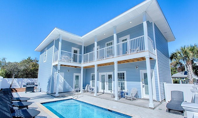 Mere steps from the beach in the gorgeous community of Crystal Beach is the perfect combination of old Florida and modern luxuries. Pier Destin-Y, a 5 bedroom, 4 bath new construction home with a 2 bedroom, 1 bath vintage “front house”, comes with a private pool and large yard area perfect for pets. Renting as a pair, you can easily fit the entire family in this combination that sleeps 18.