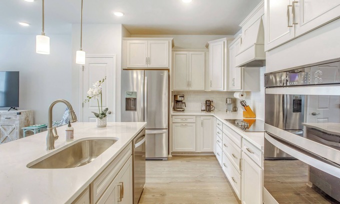 Air conditioning and a desk are featured at this 3-bedroom, 2.5-bathroom rental. The kitchen is equipped with an oven, a stovetop, and a dishwasher, as well as an ice maker, a microwave, and cookware. And you won't have to pack extra clothes, because you'll also have a washing machine.