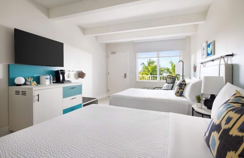 Perched above the vibrant streets of Key West, this room provides sweeping island vistas. With two queen beds and contemporary design, it's perfect for guests seeking both comfort and a view.