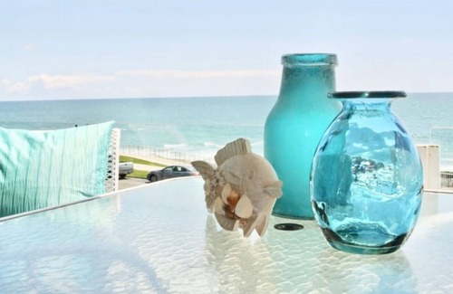 This bright and beautiful beachfront residence features massive ocean views from nearly every room and just beautiful new coastal decor.