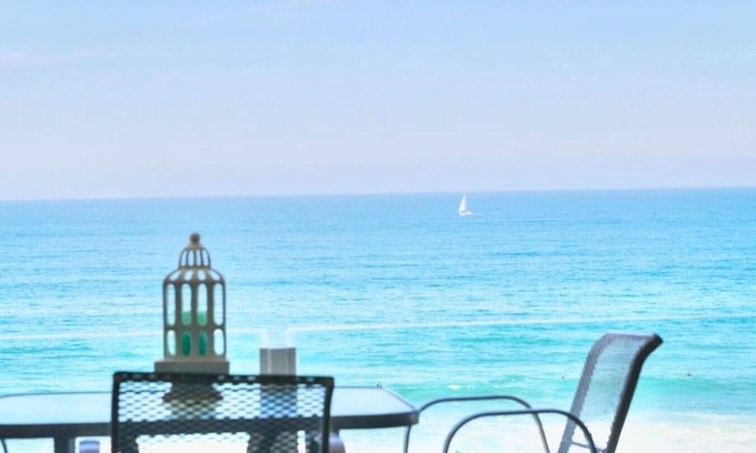 The beachfront property has 3 King beds and a Queen sofa sleeper in the living room. The living room is spacious with beautiful coastal decor. A beach view kitchen and dining from have endless ocean views. The kitchen i fully supplied so you can prepare gourmet meals. The world famous Carlsbad beach is right across the street and the adorable Village of Carlsbad is a quick stroll down the beachfront boardwalk. We have wonderful places to each and shop just a few minutes walk from the condo. The Carlsbad Flower Fields, Legoland, , Sea World, San Diego Zoo, Wild Animal Park and much more are within easy striking distance. The Alga Community pool is nearby and kids will never want to leave, its an amazing water park.