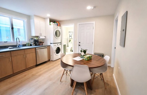 The fully equipped kitchen makes it easy to prepare meals at home, and the dining area provides a great place to gather with family or friends. Whether you're enjoying a home-cooked dinner or takeout from one of Somerville’s many amazing restaurants, the space is designed for comfort and connection.