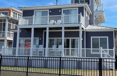 The Purple Pelican is a well-stocked, bright and homey bay house located in the gated community of Bay Creek's Marina Villages. This eastern shore home is only steps away from a private beach where you can relax or go for a dip in the calm waters, perfect for young children--just walk out the back door, through the fenced-in backyard to the convenient beach access across the street. It's such a short distance, you can run back to the house for snacks or bathroom breaks in no time at all. Enjoy the view (especially the sunsets!) of the Chesapeake Bay from one of three decks, while lounging in high-backed chairs, without even leaving the property. The Oyster Farm Seafood Eatery, close to the world-class marina, is only a short walk, bike or golf cart ride where you can enjoy a cocktail or one of the best meals in town. This restaurant has recently been through a rebrand and is a favorite among the community. After dinner, stroll along the dock to check out the boats or saunter down to C-Pier where you can have drinks, catch live music and hang with the locals.