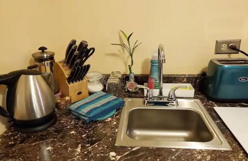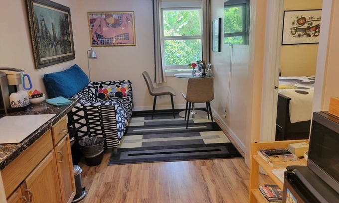 Your two room unit faces our lovely garden . You have a sleeping room, en suite bathroom with shower (no tub), and a cozy kitchenette/sitting area with sink, microwave, compact refrigerator, Keurig, coffee maker, French Press, rice maker and toaster.