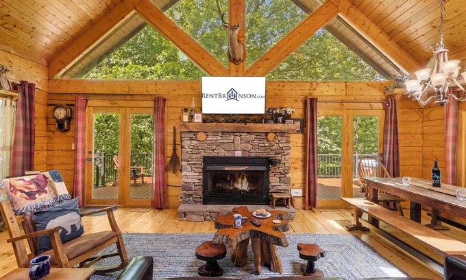 The Refuge at Tall Pines is a full-featured house with the warm cozy feel of a log cabin. It has 2,000 square feet of indoor living space. There are several separate outdoor living areas including a screened-in sleeping porch, a covered porch, an open deck, and a hot-tub deck. The main level features a large stone fireplace (gas log), large custom windows, 2 queen bedrooms, a bath, and a large country kitchen/living room. Upstairs is a spacious loft with great views of the surrounding forest, and a large private master bedroom suite with a separate shower and extra-large tub. The lowest level is a comfortable family room area. Our guests enjoy the main floor kitchen/living room for conversation and the family room for fun. Full laundry facilities are tucked away in the corner of the lowest level. Enjoy the pool table and large screen tv downstairs and the patio that features a pool table. Upstairs is another game for your to enjoy - a foosball table. You can enjoy fast wifi speeds throughout this beautiful home! Your booking comes with $400 in attraction tickets daily, fun built right in!