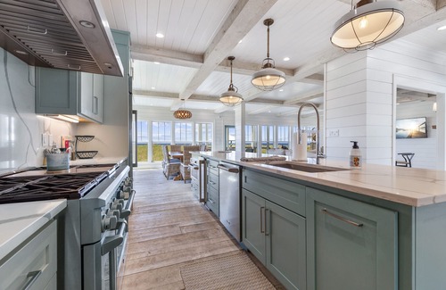 Welcome to the Casablanca where you will fall in love with our private beach located in Alligator Point, Florida! Sand awaits your toes in this completely reconstructed home that looks and feels like new construction with its nickel gap wood walls, handcrafted wood-beam ceilings, and white-washed wide-planked solid wood floors. Upon entry, you are immediately greeted with views of sea oats and our snowy white sandy beach. The spacious open floor plan has a chef's kitchen inclusive of a double oven with gas stovetop, both a full-size standalone refrigerator and freezer, and an ice maker. Two pantries allow for plenty of storage. The beautiful 10-foot solid wood table opens to the spacious living room with a huge sectional that you can easily relax in after a "hard" day at the beach. The upstairs master suite with a king bed has a private balcony and a luxurious oversized shower that provides unobstructed Gulf views. The large downstairs master suite also has a king bed with a sitting area and floor-to-ceiling windows overlooking the beach. The third master suite with a queen bed is connected to a second family room that provides bay views and has a comfortable pullout sofa when an extra bed is needed. The west wing has a fourth queen bedroom with both gulf and bay views and shares a bathroom with the bay-view bunk room. Never-ending hot water thanks to the tankless Rinnai hot water heater. Enjoy outdoor dining on the covered back porch. There are two washers and dryers (one upstairs and one downstairs). We provide Free high-speed Internet. We also have 5 Smart TVs throughout the Casablanca.