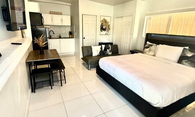 This 1-bedroom apartment is perfect for your escape to Miami. Nestled in the heart of the city, our tranquil and brilliant property offers a cozy retreat for guests. With a comfortable queen bed and a sofa bed, you'll have plenty of space to unwind after a day of exploring. The apartment is equipped with an iron, AC, and WiFi. Whether you're planning a long vacation or a short getaway, our place is designed to make your stay unforgettable. Come and experience the quaint charm of our Miami hideaway. Our place is equipped for both long or short stays to make your holiday one to remember.