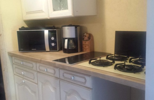 Rental 2 minutes from downtown, T2 apartment facing south, and on one level, in fenced private property, quiet in the garden, with outdoor private area, for grilling and meals, and children's play areas, deckchairs, trampoline , slide, table tennis table.
