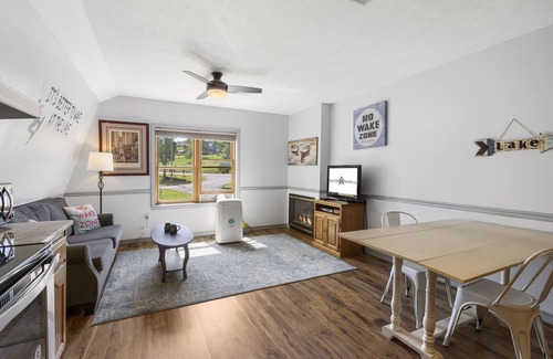 No Wake Zone Suite is the perfect retreat for a romantic escape or a relaxing lakefront adventure! Nestled on the third floor of the Red Bud Cove Barn Suite Lodge, this charming suite offers a peaceful lawn view and easy access to all the excitement of Branson, Missouri -- just minutes away!