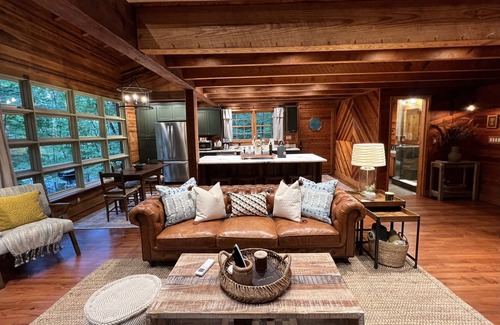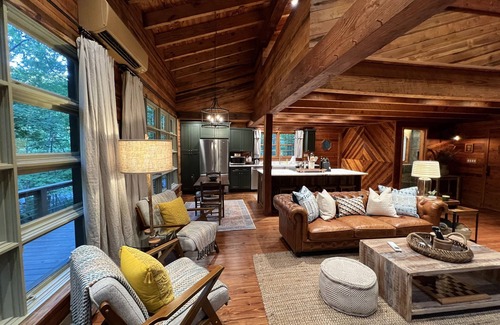This artisan-crafted cabin was built from reclaimed timbers & is non-smoking & pet-free. Just minutes from DeSoto State Park & Mentone, it offers a private hot tub (cleaned after each guest) for relaxing. The kitchen & bathrooms are remodeled with original beams, stainless steel appliances & marble countertops. Enjoy walk-in slate-and-river-rock showers upstairs or down. Spend evenings by the fire pit. Explore nearby hiking, waterfalls, Little River Canyon, horseback trails and golf courses.