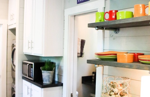 The cottage is light and airy with large windows and high ceilings throughout for viewing the river and surrounding area. The cozy, well appointed living space provides a complete kitchen, master bedroom, living area with sleeping sofa, and bath. In addition to the beautiful indoor space, two porches and a hammock area are available to enjoy the rushing river sounds. A riverside firepit and sitting area will also provide an excellent opportunity for relaxation.