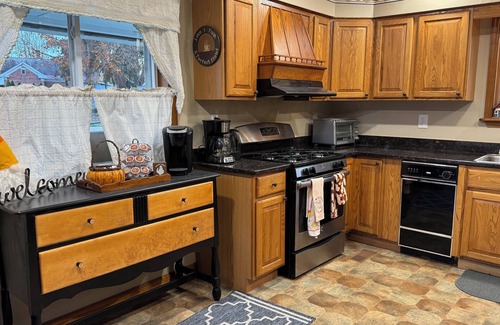In the basement is a fun space to watch a movie or play a game. It also includes a full size futon, laundry facilities and a half bath.