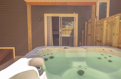When night falls, soak in the secluded hot tub grotto, warm up by the fire, and retreat to spacious, hotel-style bathrooms. Trade ordinary weekends for something special—book your riverfront escape today.