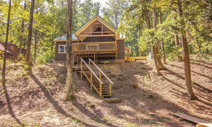 Spend the day paddling kayaks, floating in tubes, or fishing along the Muskegon, then grill out while the kids run between bunks and the yard.