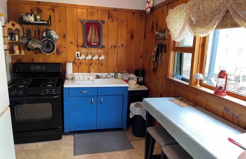 This old time country setting is the perfect place for vacations/gatherings for family and friends. The originally built 1930's cabin sits only yards away from a private 135 acre lake! With 2 bedrooms (one with a full and the other with two twin beds), dining area, and a full kitchen with a propane stove, this cabin is ideal for feeling relaxed! The private lake is great for swimming, boating (no gas motors), and playing on the beach. There is a gazebo, swings, communal fire pit, ping pong, a basketball hoop, paddleboats, and kayaks available at no extra charge on the premises. There will be a single-cup Keurig coffee machine, standard condiments, basic toiletries, kitchen essentials, and one charcoal grill available per cabin. - No air conditioners in the cabin. No air conditioners allowed on premises. - No bed linens are supplied. - Make sure to bring any linens, bed sheets (full-size), pillow cases, and any bath/beach towels you may need. - Dogs are allowed. - Cats are not allowed. - If you're bringing a dog we do require that they remain on a leash/tethered at all times outdoors, and if they could remain off the indoor furniture if possible. - Bathing pets is either done in the cabin shower or with the outside hose, not in the kitchen sink.