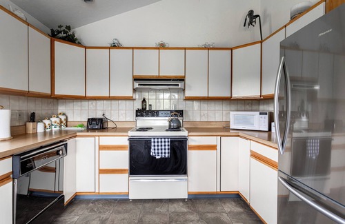 Split level, 2 beautiful and sizeable living spaces - both with large smart TVs (with Netflix, Prime and more) and fireplaces (one real, one electric), 3 full bedrooms, 3 full bathrooms (one ensuite, one upstairs, one down), and a fully equipped kitchen - everything you need for a stress free vacation.