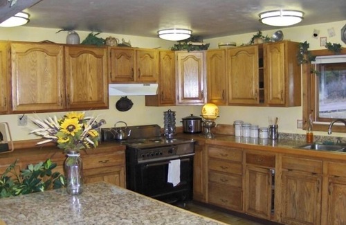 The backyard forms your own private park. You can relax while your children are engrossed with the safety and excitement of their own secluded space. The large log playground provides swings for tiny tots to adults. Its log structure forms a balance bridge, fireman's pole, a sliding board, climbing tires. Enjoy "King of the Log" on a nearby balance beam. You can play basketball on the concrete court or put up the adjustable net and grab the equipment for playing pickle ball, volleyball, or badminton. We try to keep a tether ball supplied, however, the local bears like to eat it. N