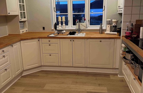 Outside, you will find a lovely terrace with garden furniture and a grill. There is also a trampoline that you are free to use (NB! The trampoline is used at your own risk). There are also football goals, so you can hold a small private tournament. The garden is enclosed, so the dog can roam freely without the risk of running away.